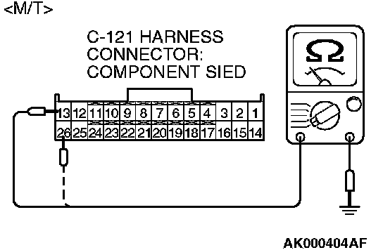 STEP 7. Check for continuity at ECM harness side connector C-121