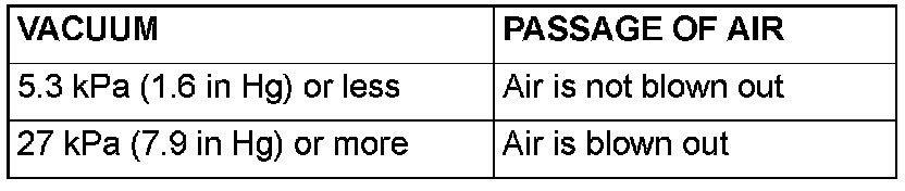 4. As described in the chart, apply a vacuum and check the passage of air by blowing through one side of the EGR passage.