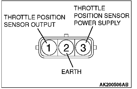 3. Connect an ohmmeter between terminals 2 (ground) and 1 (output), or between terminals 1 (output) and 3 (power). Then, make sure that the resistance changes smoothly when the throttle valve is slowly moved to the fully open position.
