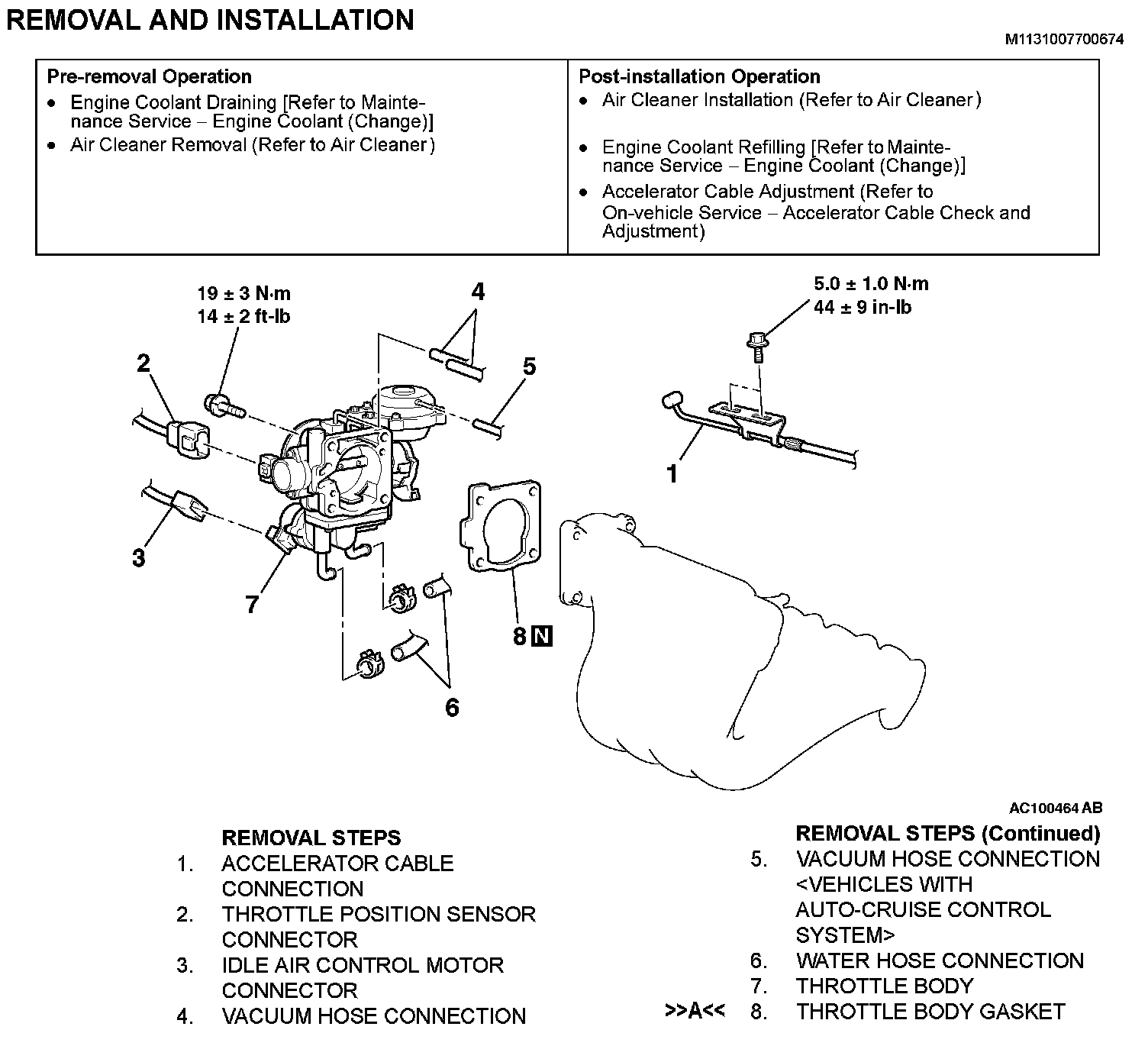 Poor idling etc. may result if the throttle body gasket is installed incorrectly.