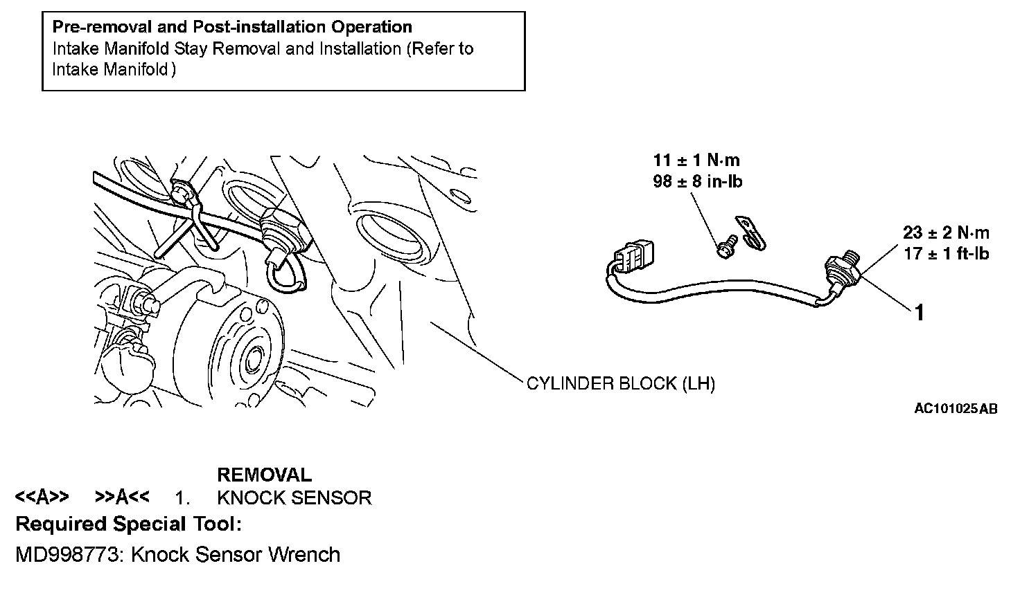 Use special tool MD998773 to remove the knock sensor.