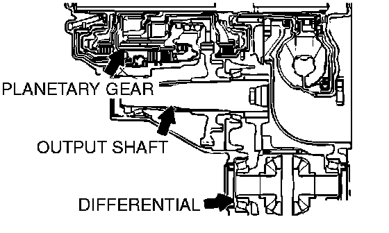 Disassemble the transaxle and check the planetary gear and output shaft, etc. Repair or replace the damaged parts. Then check the symptom.