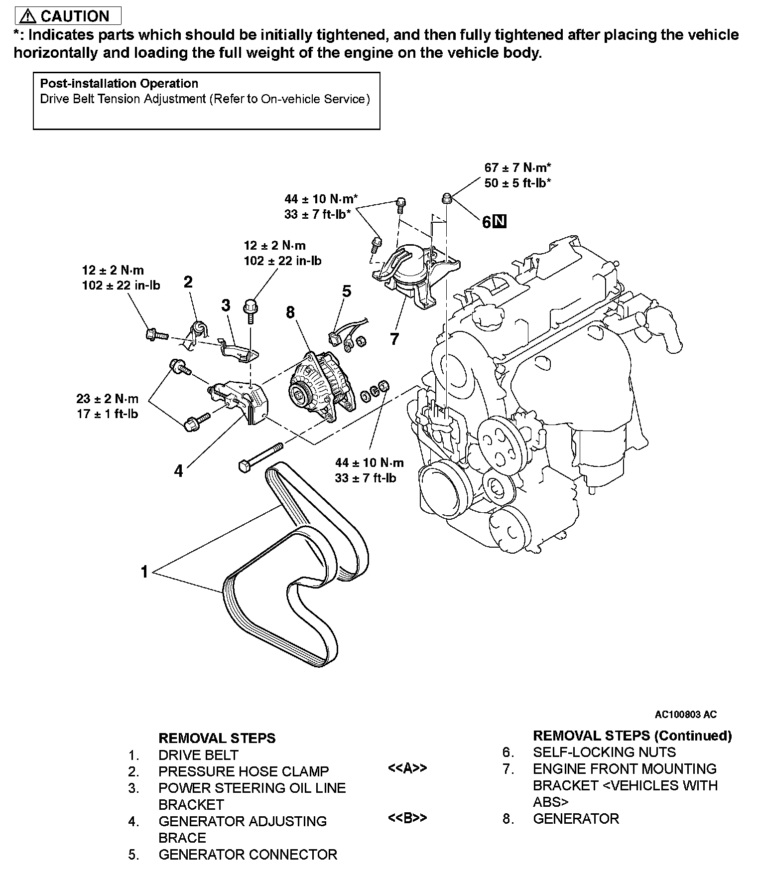 GENERATOR ASSEMBLYREMOVAL AND INSTALLATION <2.0L ENGINE>