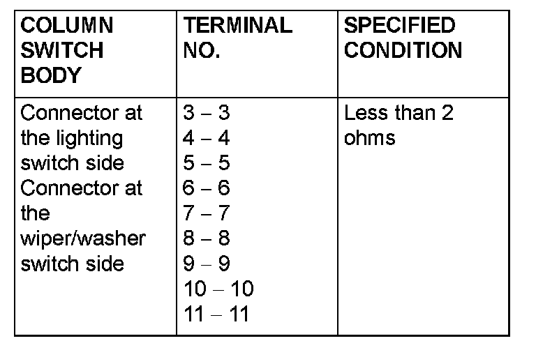 COLUMN SWITCH CONTINUITY CHECK (AT SWITCH BODY)