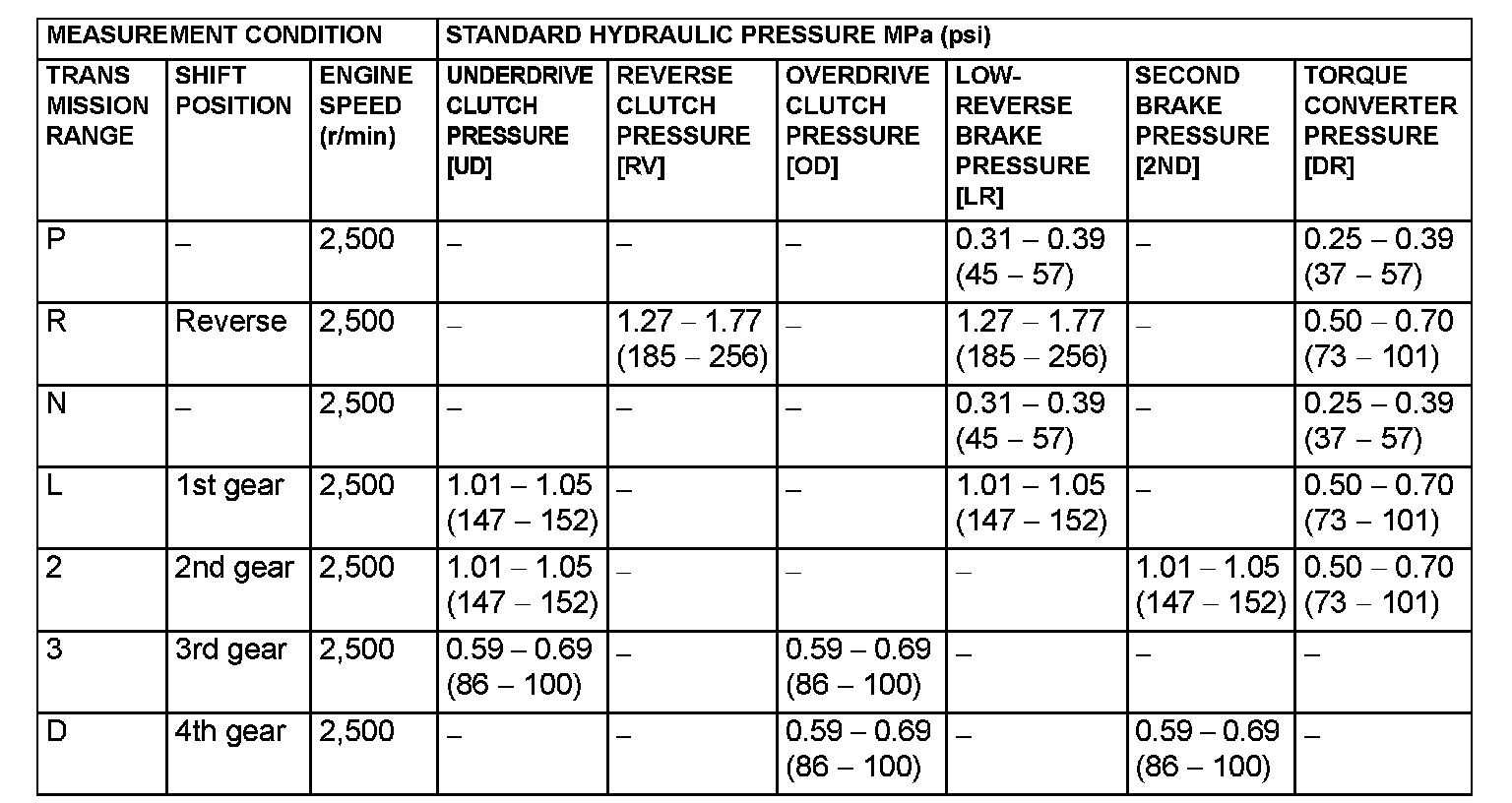 ^ Transmission fluid temperature: 70 - 80°C (158 - 176°F)
