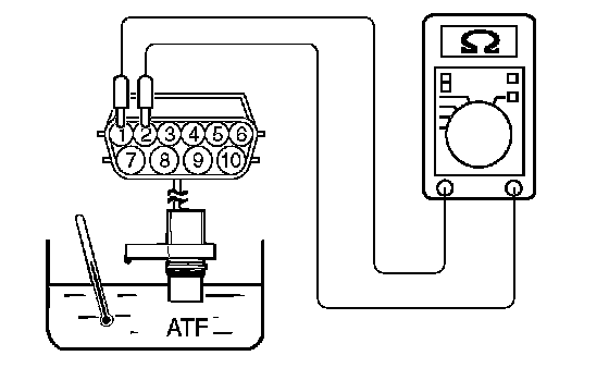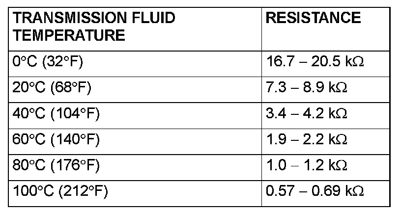 3. If the transmission fluid temperature sensor resistance is outside the specified range, replace the transmission fluid temperature sensor.