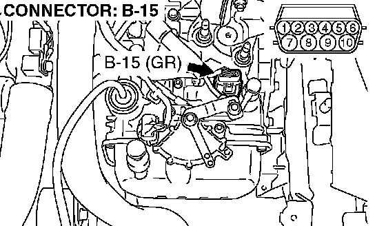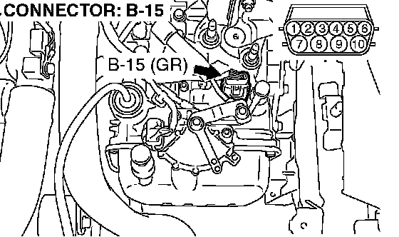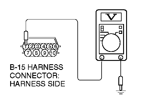 1) Disconnect connector B-15 and measure at the harness side.