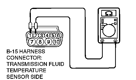 STEP 5. Check the transmission fluid temperature sensor at A/T control solenoid valve assembly connector B-15.