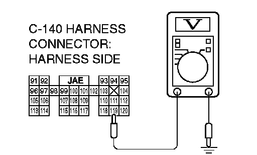 STEP 7. Measure the sensor output voltage at PCM connector C-140 by backprobing.