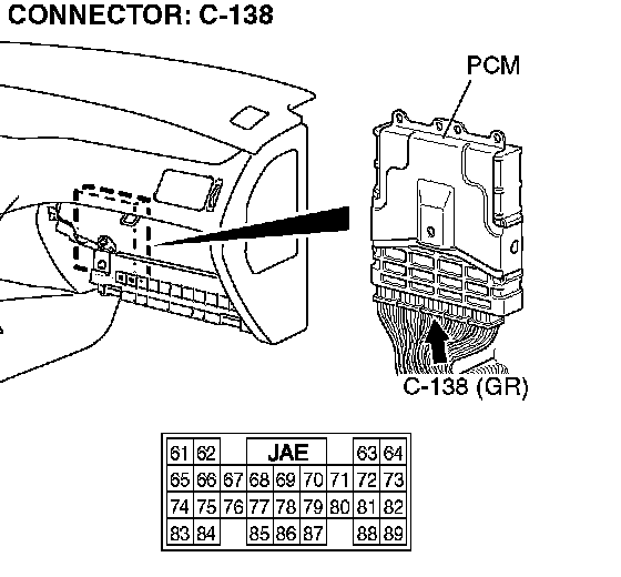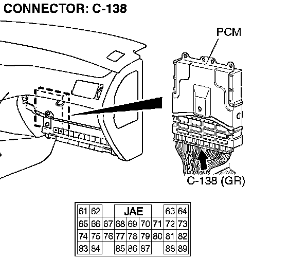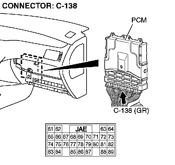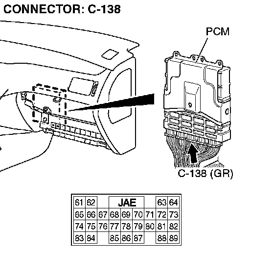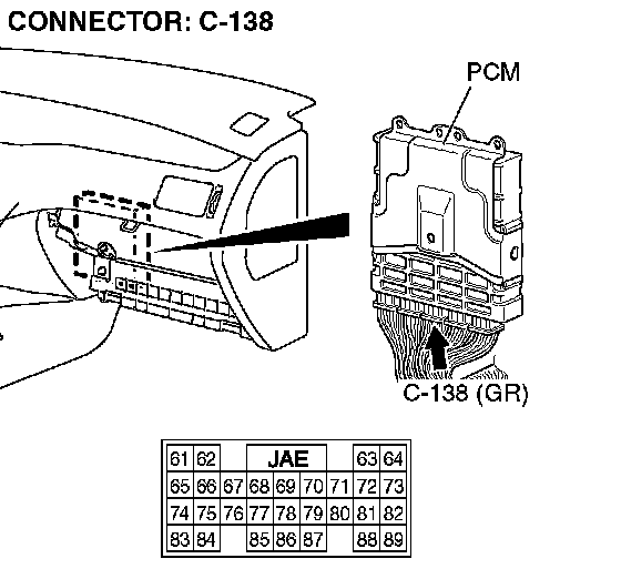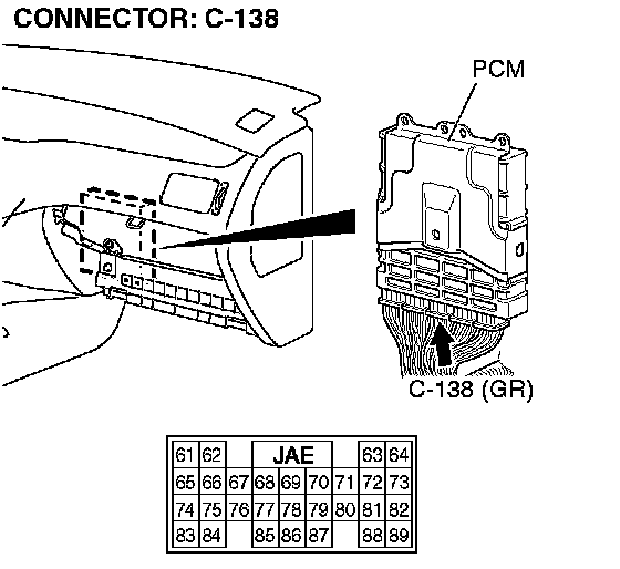 STEP 20. Check PCM connector C-138 for loose, corroded or damaged terminals, or terminals pushed back in the connector.