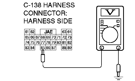STEP 34. Measure the transmission range switch output voltage at PCM connector C-138 by backprobing.