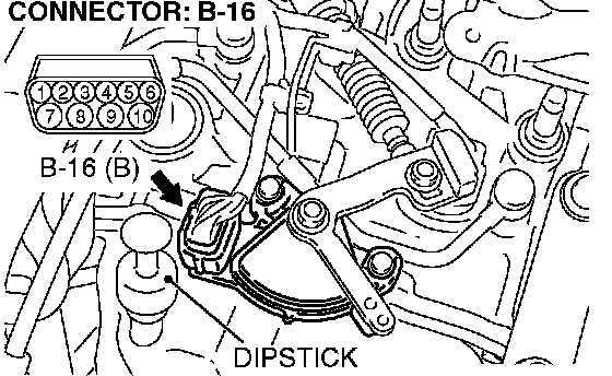 STEP 23. Check transmission range switch connector B-16 for loose, corroded or damaged terminals, or terminals pushed back in the connector.