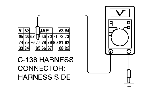 STEP 24. Measure the transmission range switch output voltage at PCM connector C-138 by backprobing.