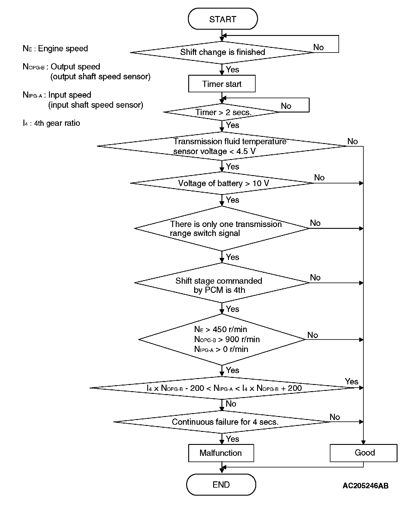 ^ In 4th gear, if a difference between turbine revolution and that value calculated from output revolution equals or exceeds specified value, PCM judges that step-out in 4th gear has occurred.
