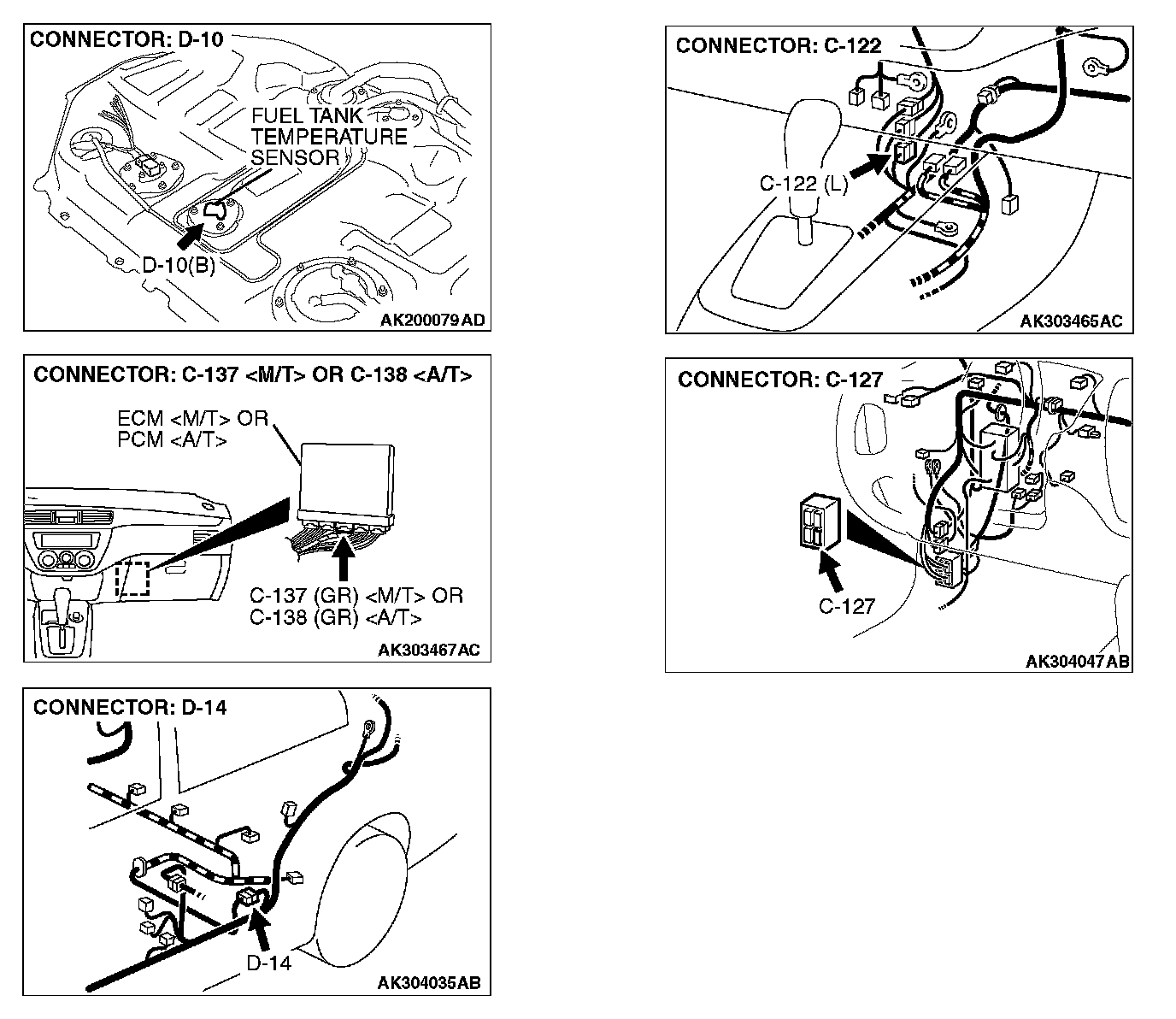 2. Disconnect the fuel tank temperature sensor connector D-10.