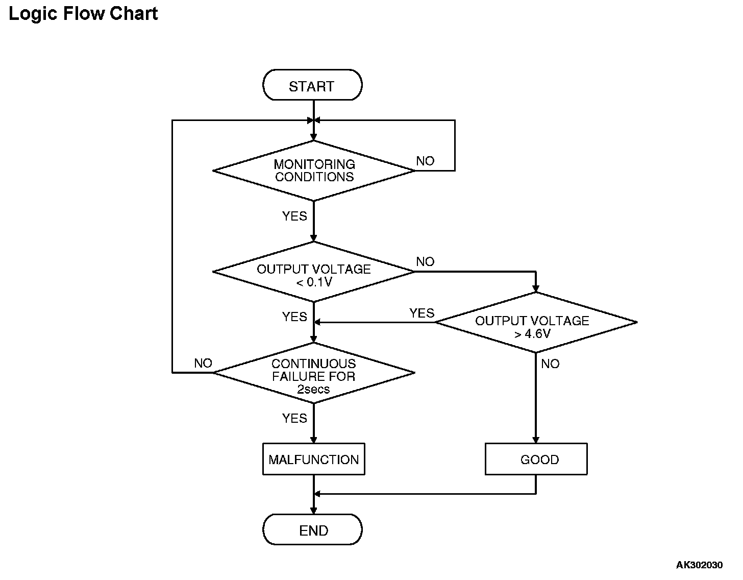 - Sensor output voltage has continued to be 4.6 volts or higher for 2 seconds.