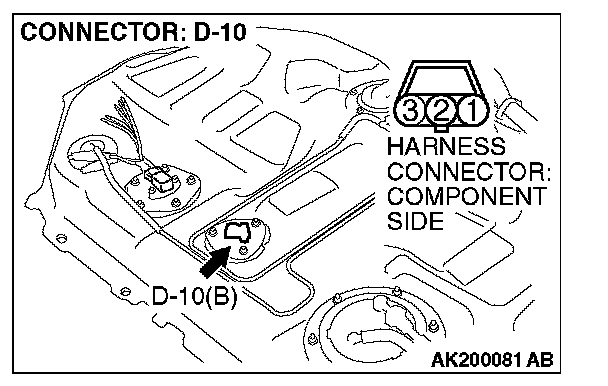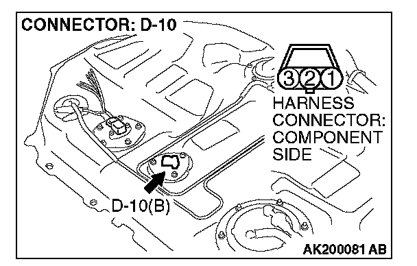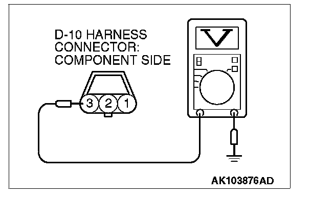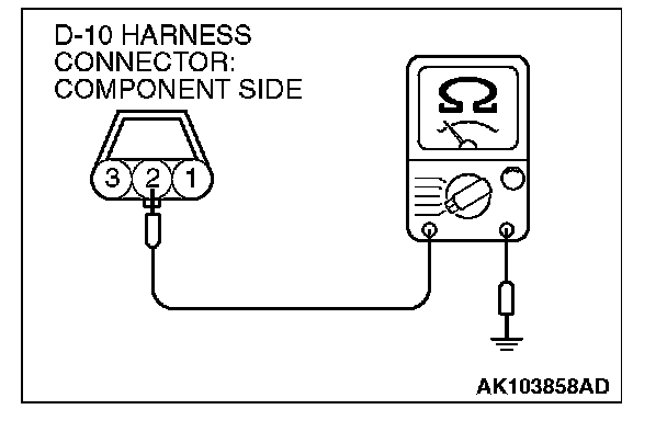 1. Disconnect the connector D-10 and measure at the harness side.
