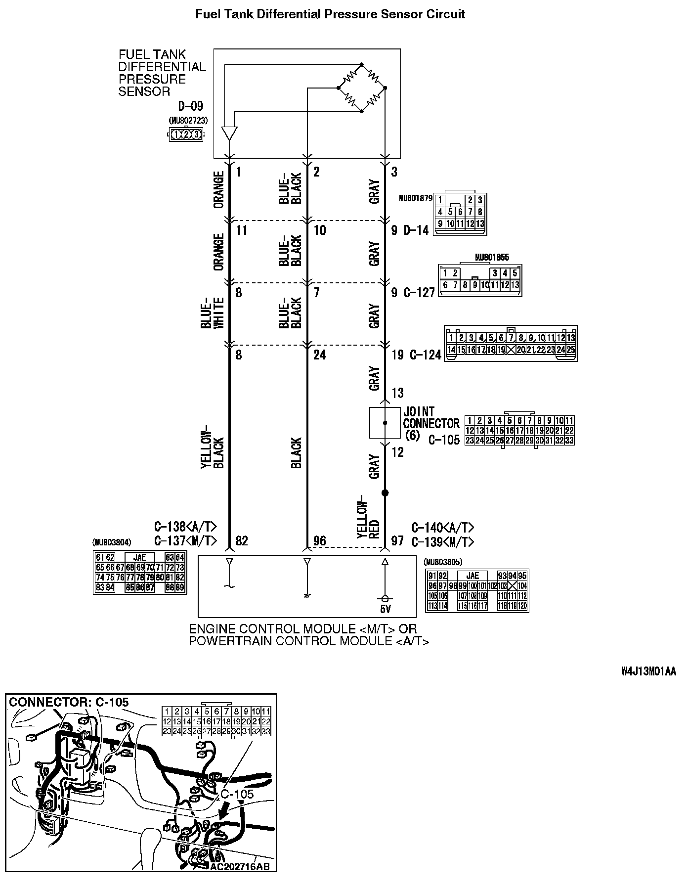 - The fuel tank differential pressure sensor (terminal 1) returns a voltage signal to the ECM