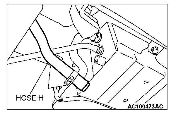 1. Disconnect hose H from the evaporative emission canister side and plug the hose.