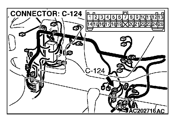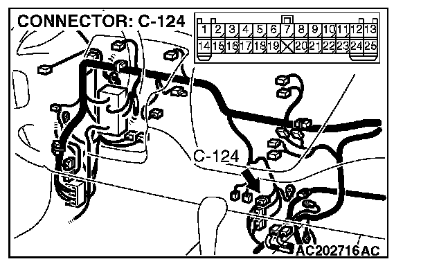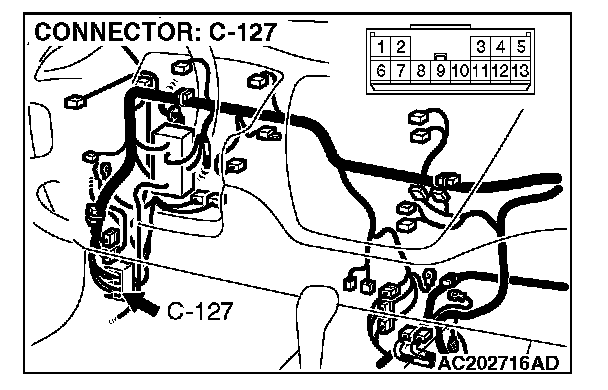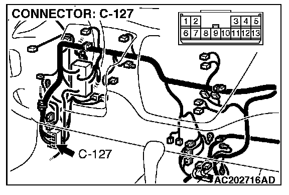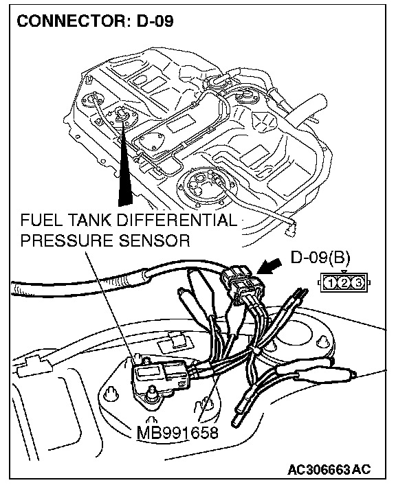 4. Connect special tool MB991658 to both halves of connector D-09.