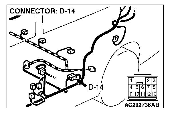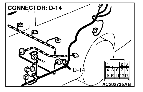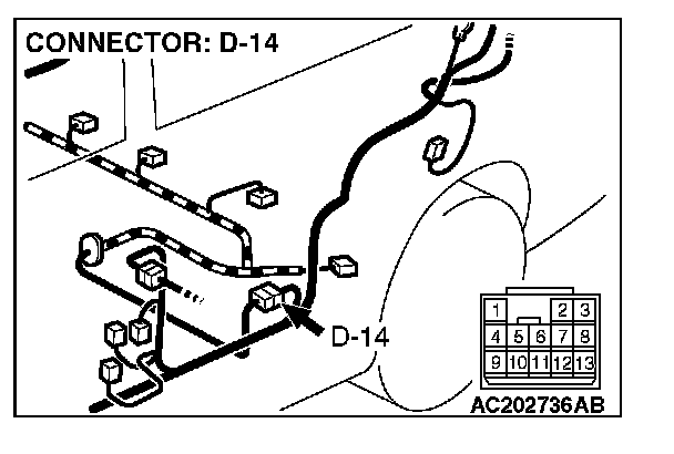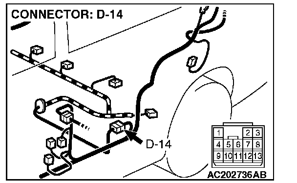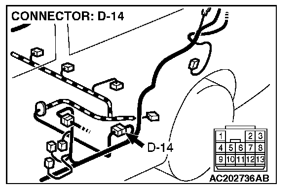 STEP 2. Measure the signal voltage at intermediate connector D-14 by backprobing.