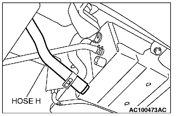1. Disconnect hose H from the evaporative emission canister side and plug the hose.
