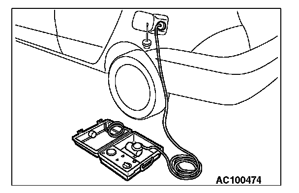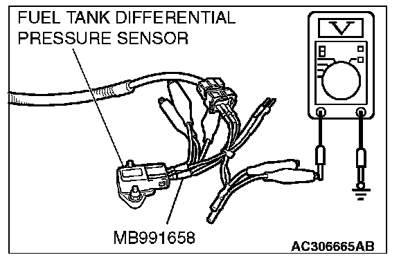 - To check for system blockage, do a performance test which uses a mechanical vacuum gauge and scan tool MB991958 set on the fuel tank differential pressure sensor (TANK PRS SNSR 73). The mechanical gauge reading is used to verify scan tool MB991958 reading. A comparison of the mechanical gauge with the reading on scan tool MB991958 will locate a problem in the system.
