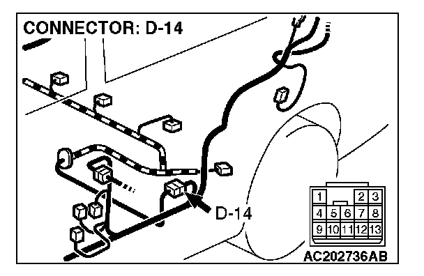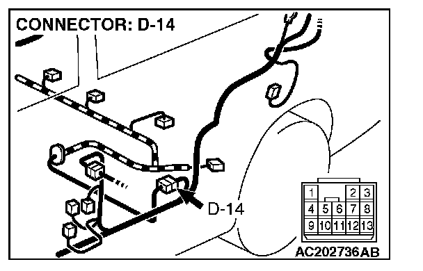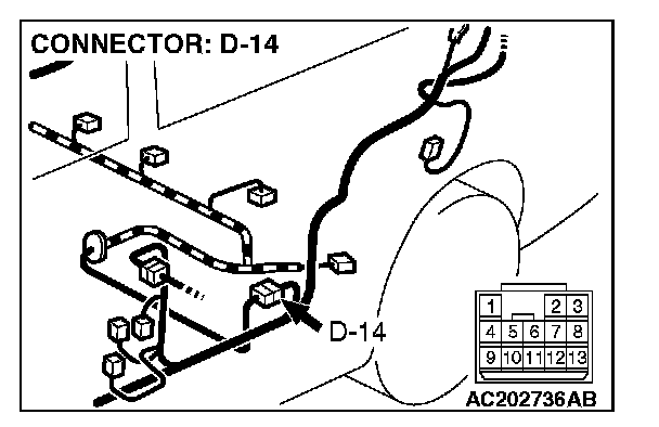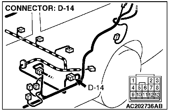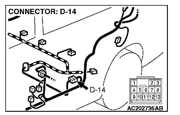 STEP 2. Measure the signal voltage at intermediate connector D-14 by backprobing.
