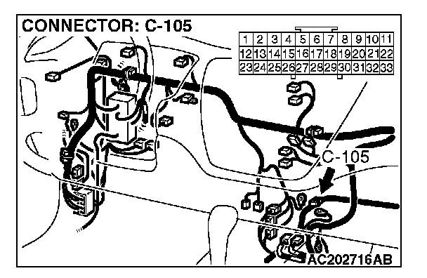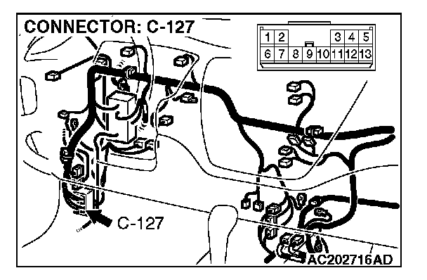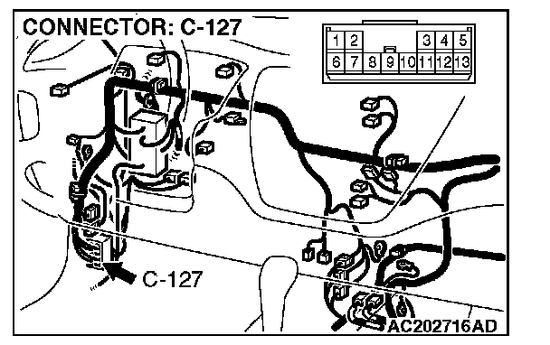 4. Connect special tool MB991658 to both halves of connector D-09.