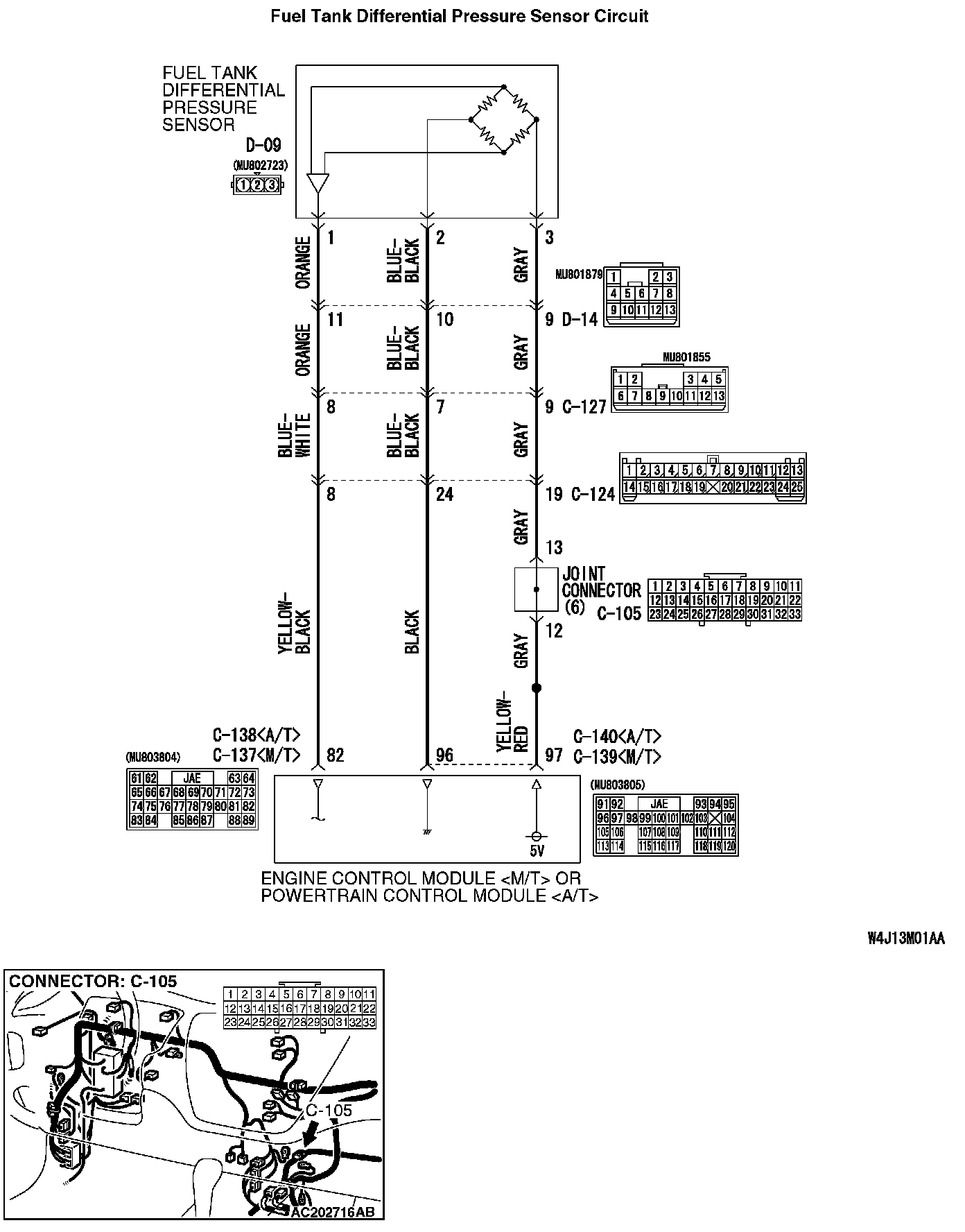 - The fuel tank differential pressure sensor (terminal 1) returns a voltage signal to the ECM