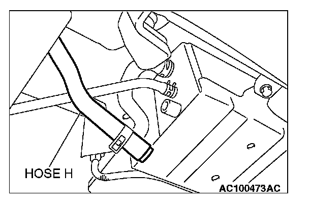 1. Disconnect hose H from the evaporative emission canister side and plug the hose.
