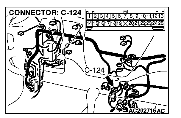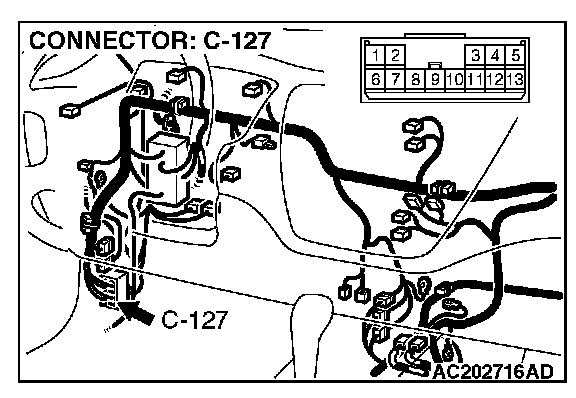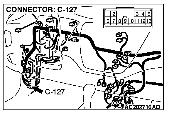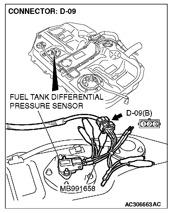 4. Connect special tool MB991658 to both halves of connector D-09.
