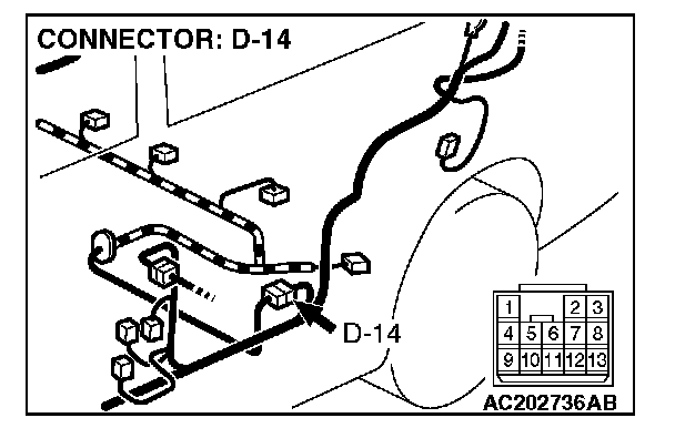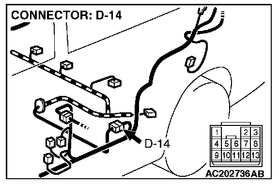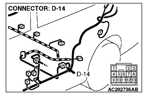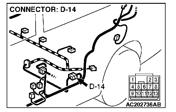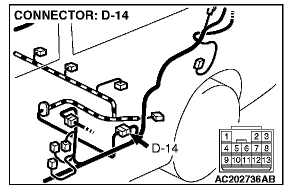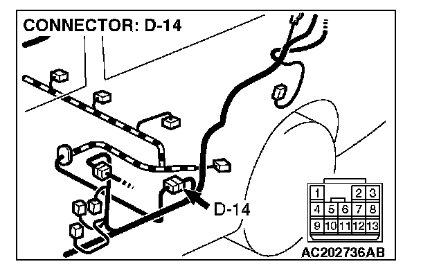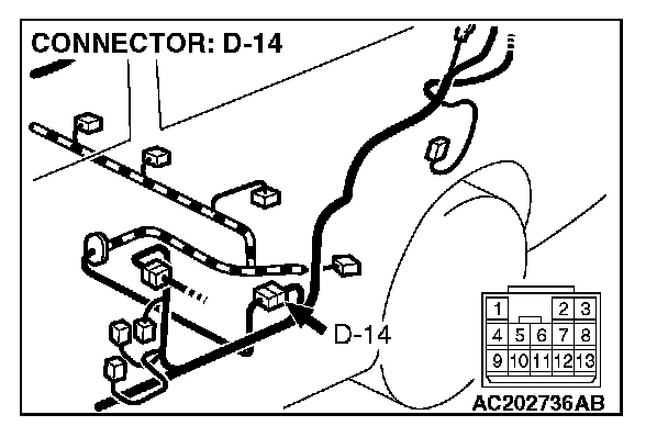 STEP 2. Measure the signal voltage at intermediate connector D-14 by backprobing.