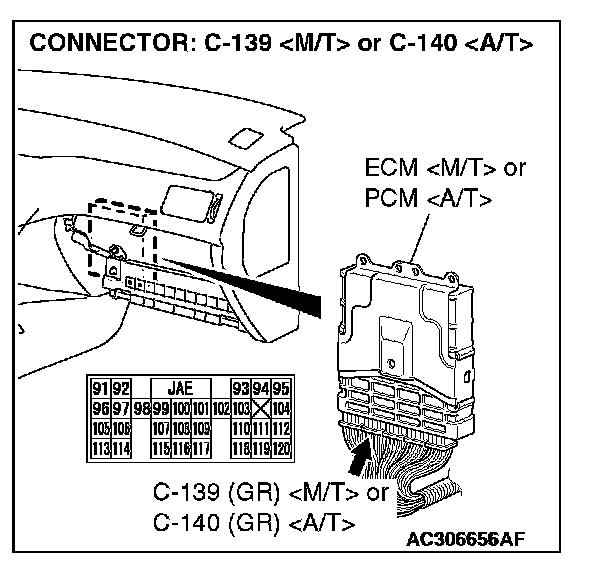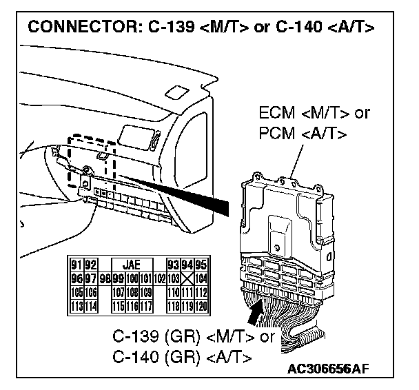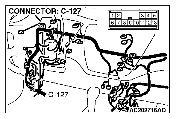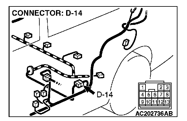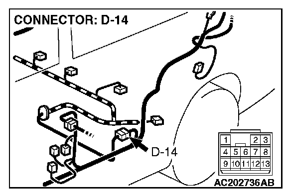 4. Connect special tool MB991658 to both halves of connector D-09.