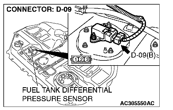 STEP 16. Check the signal voltage at fuel tank differential pressure sensor connector D-09.1. Remove the fuel tank. (Refer to Fuel Tank.)