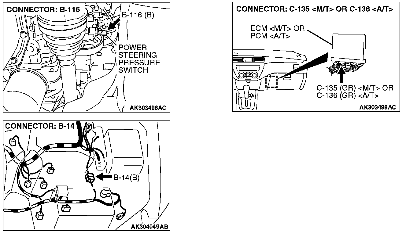 STEP 5. Check harness connector B-116 at the power steering pressure switch and harness connector C-135 at ECM