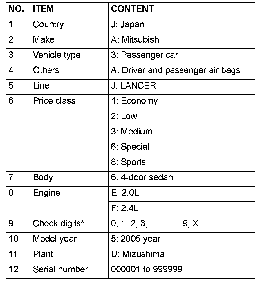 NOTE: Check digit means a single number, or letter X used to verify the accuracy of transcription of vehicle identification number.