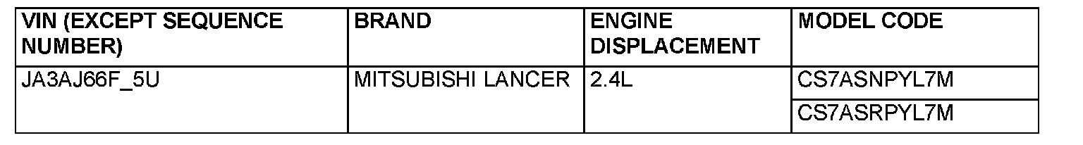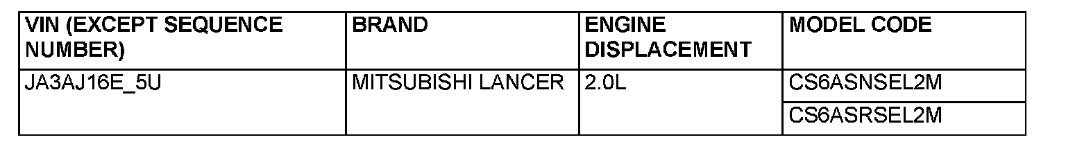 VEHICLE IDENTIFICATION NUMBER LIST