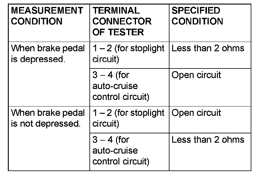 Brake Switch (Cruise Control): Testing and Inspection