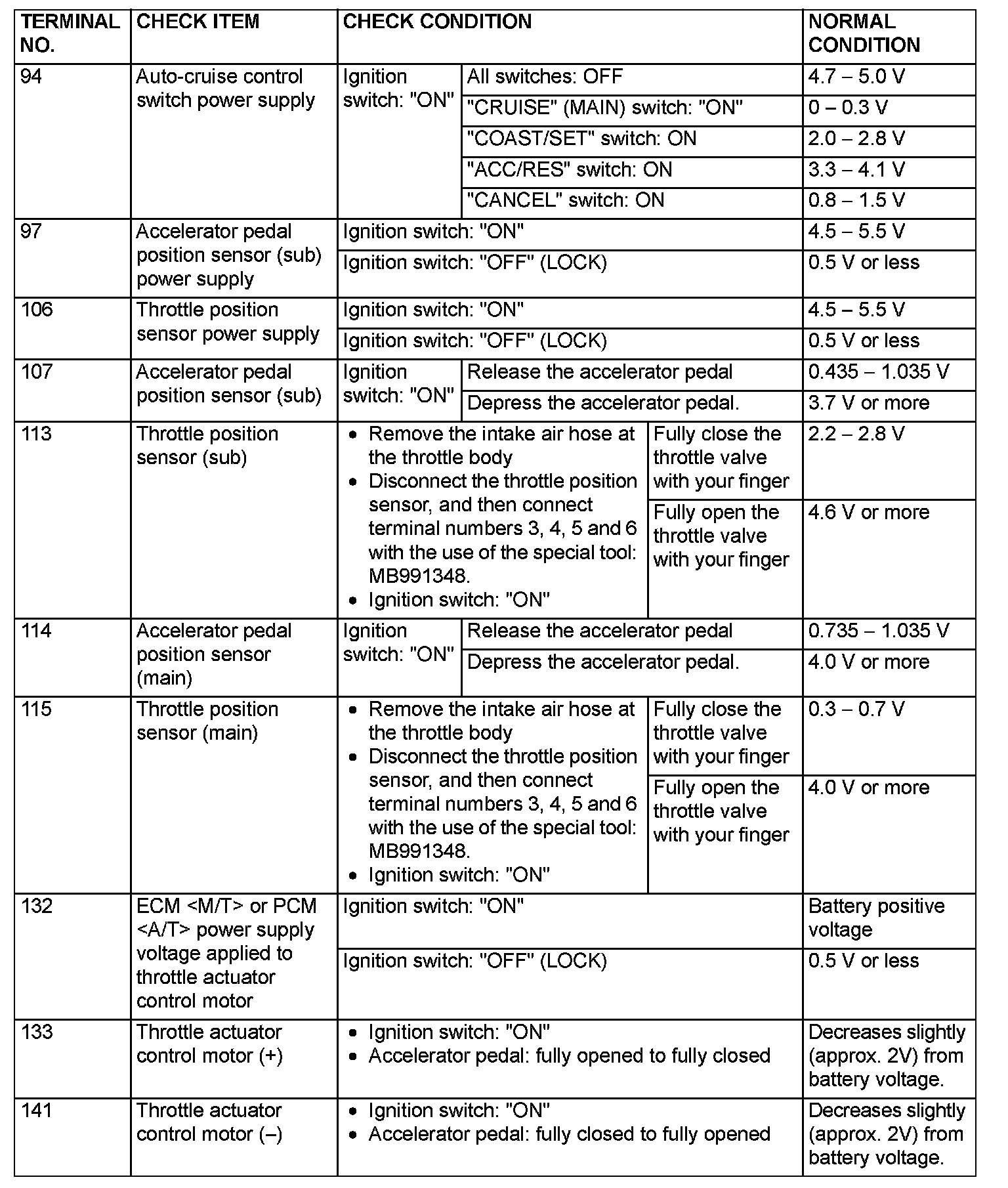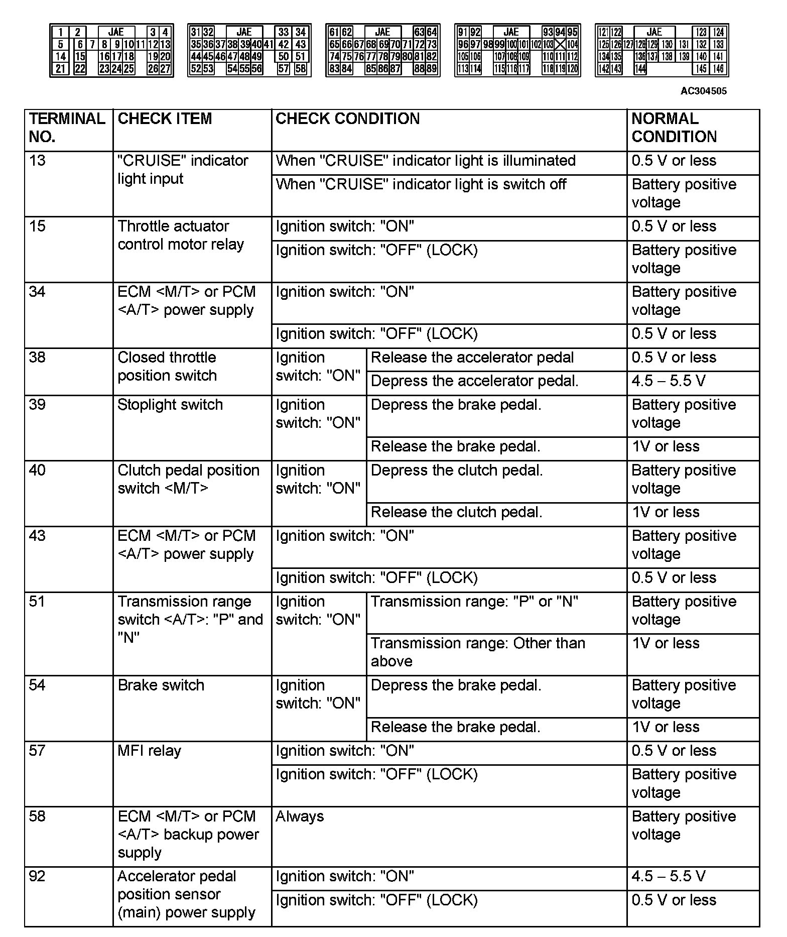 ECM<M/T> Or PCM<A/T> Terminal Voltage Reference Chart Part 1: