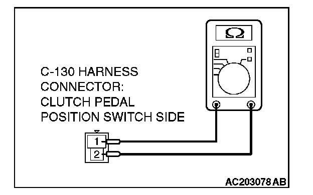 STEP 5. Check the harness wire between clutch pedal position switch connector C-130 terminal 1 and ground wire for damage.