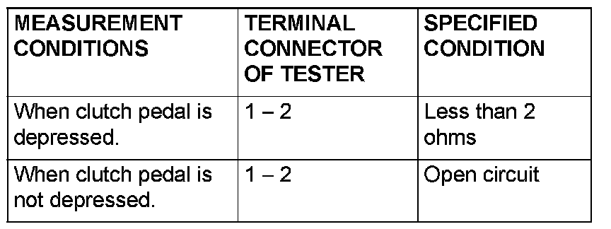 - voltage should measure 0.5 volts or less. (When clutch pedal is depressed.)