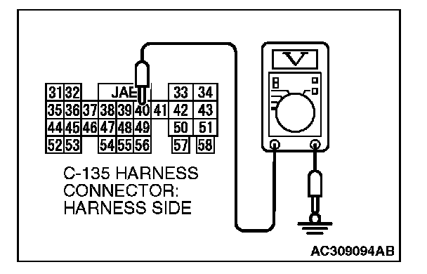 3. Measure the voltage between auto-cruise control-ECU connector C-135 terminal 40 and ground by backprobing.