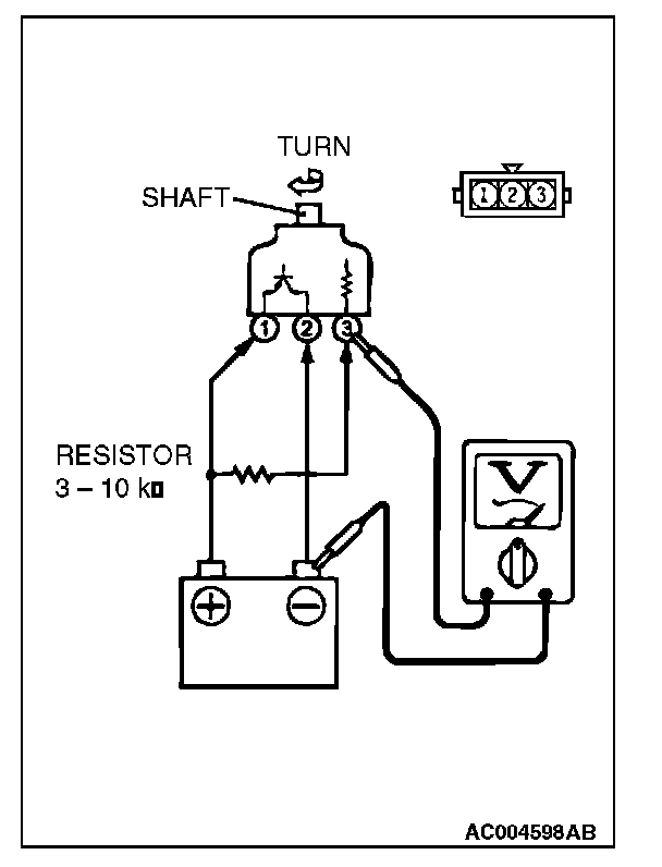 2. Turn the shaft of the vehicle speed sensor and check that there is voltage between terminals 2 - 3. (one turn = four pulses)