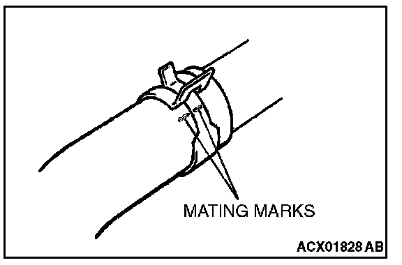 Make mating marks on the radiator hose and the hose clamp. Disconnect the radiator hose.
