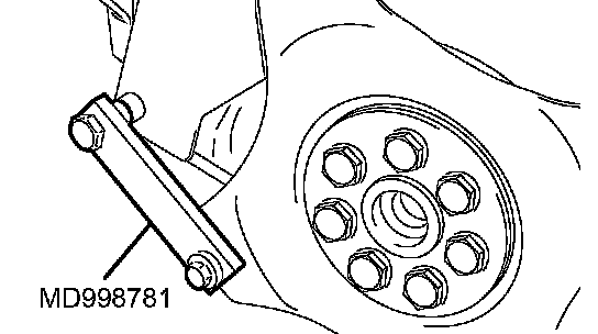 6. Lock the flywheel or drive plate using the special tool MD998781.