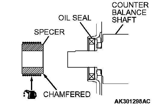 2. Install the spacer with the chamfered end facing toward the oil seal.