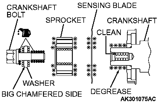1. Clean and then degrease the contacting surfaces of the crankshaft sprocket, sensing blade and crankshaft.