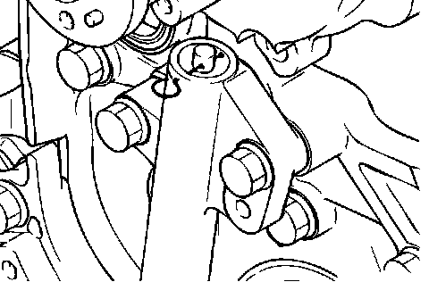 3. Insert a wire [1.4 mm (0.055 inch) in diameter] into the set holes. This auto-tensioner setting wire will be used during timing belt alignment.