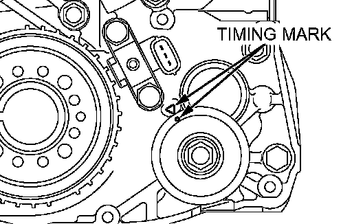 2. Align the timing mark on the crankshaft sprocket with the timing mark on the front case.
